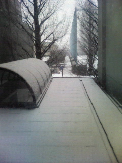 今日は朝から雪が降ってメガネに雪が積もりながら